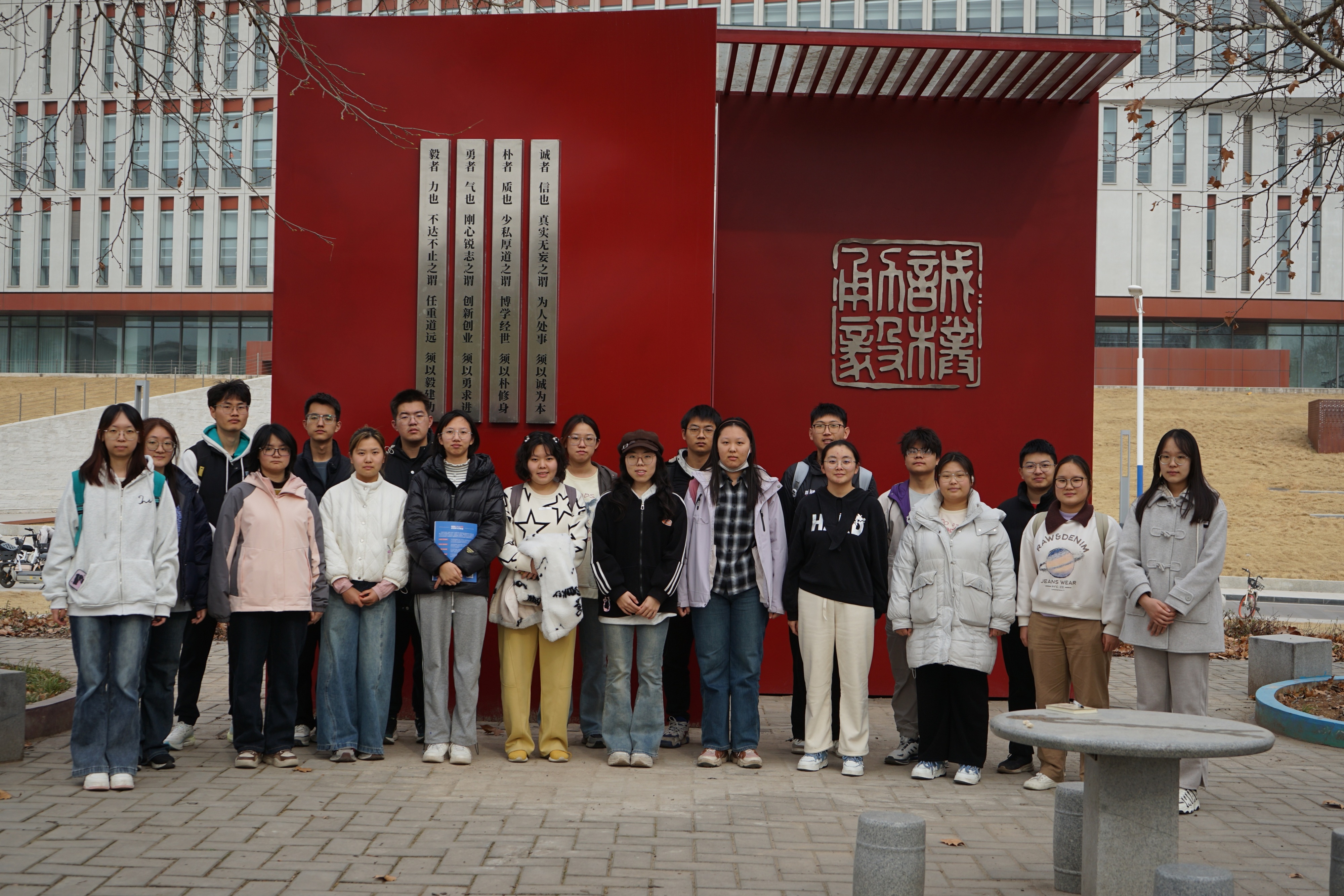 学生与红墙合影