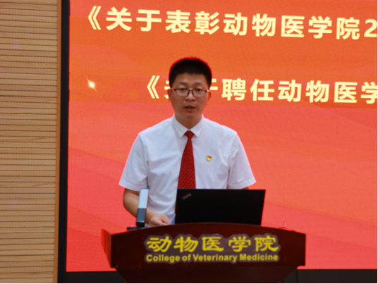 6月14日上午,学院在4129报告厅隆重举行2024届毕业生毕业典礼暨表彰大会。动物医学院领导班子、各系室主任、研究生导师、本科生班主任、辅导员及2024届全体毕业生参加大会。大会由学院党委书记吴继东主持。