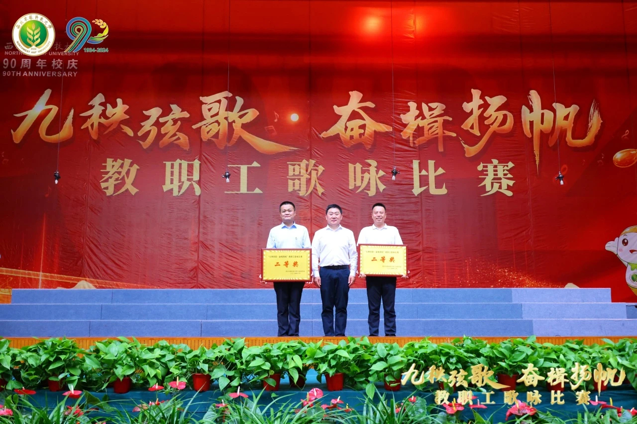 为展现全校教职工蓬勃向上的精神风貌,进一步激发全校教职工爱党爱国爱校热情,传承和弘扬西农精神,6月28、29日,学校于南校区体育馆举办“九秩弦歌·奋楫扬帆”教职工歌咏比赛,学院教职工荣获二等奖,展现了我院教师的别样风采。今天,让我们一起回顾那些动人的瞬间,感受老师们在音符中绽放的教育情怀。