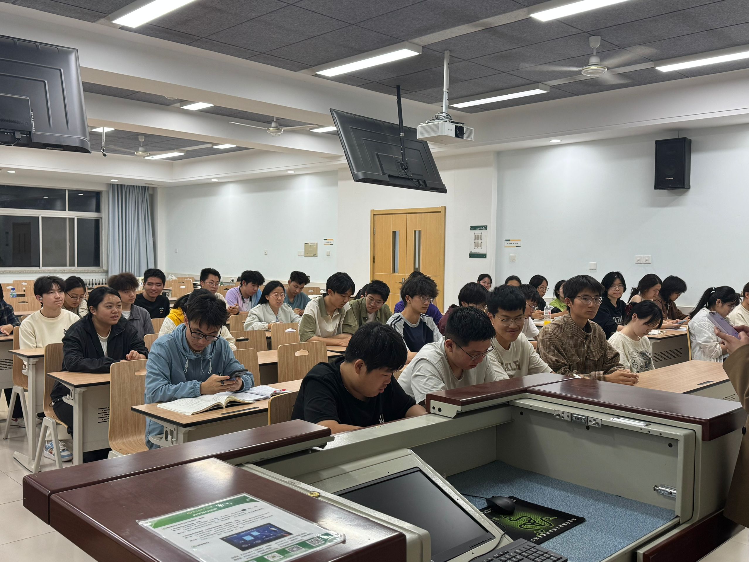 会议围绕假期安全、宿舍管理、网络行为规范及学风建设等方面展开。万畅老师结合近期高校典型案例,从三方面作出重点强调:一是增强安全意识,严格遵守校规校纪。严格落实宿舍安全管理制度,严禁使用电饭煲、电磁炉、电热毯等大功率电器,避免因电路超负荷引发火灾;要求离校前关闭门窗水电,做到“人走电断”。二是规范网络言行,维护清朗网络空间。明确要求学生在网络发言中严守法律底线,禁止传播谣言或发布攻击性言论,严禁使用非法VPN访问境外网站;同时提醒学生警惕钓鱼邮件、陌生链接等网络诈骗手段,强化个人信息保护意识。三是科学规划时间,强化自我管理。建议学生针对概率论、线性代数等课程难度大、任务重的学科制定学习计划并善用学业辅导资源,摒弃懈怠心态,合理规划剩余时间。