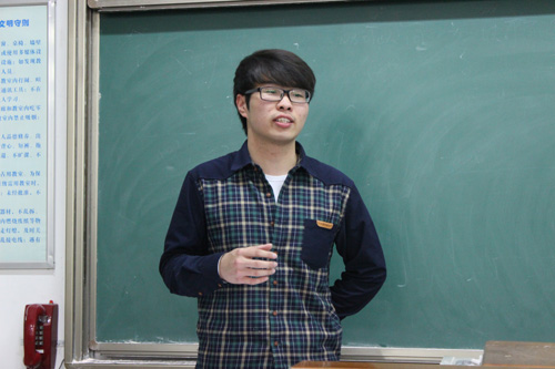 七点三十分,展示活动正式开始。14级每班选出两个宿舍上前演讲,向大家讲述他们宿舍的成员、生活习惯以及生活趣事等。PPT取用了大量有趣的生活图片,配上选手诙谐幽默的解说,赢得在场观众的阵阵欢笑。