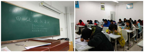 本次模拟考试采用全真四级模拟试题,学生会干部双人制监考,真实营造考试气氛、提供安静严肃的考试环境,使同学们尽可能地熟悉四级考试的流程与场景。试后,监考人员也根据《2015年12月19日全国大学英语四、六级考试特别提示》,提醒同学们明确试音时间、试音地点及相关注意事项,同学们还阅读了学长学姐们的四级考试经验总结,并进行了热烈交流探讨,从中学习到了许多宝贵的经验和技巧。