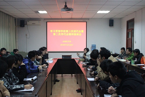 动医学院团工委书记王丹为大家宣读了李兴旺书记在学校第三次团代会暨第二次学代会上的讲话,并作了详尽的解读和分析。宣读结束后,同学们积极发言,各自表达自己对于讲话内容、精神的理解和感悟,深刻理解了李书记对于我校大学生提出的四点希望,即希望大家胸怀祖国、刻苦学习、勇于创新、提升素质,在“十三五规划”、“实现两个一百年”的时期为学校、国家切实作出贡献。同时,李书记对团学工作作出了新的指示和建议,要求广泛凝聚青年学生、积极地开展团学工作,强调要为同学们办好事、办实事,树立良好形象,发挥模范作用和凝聚作用。团学干部纷纷表示将会身体力行,在学习生活中贯彻、落实讲话精神。