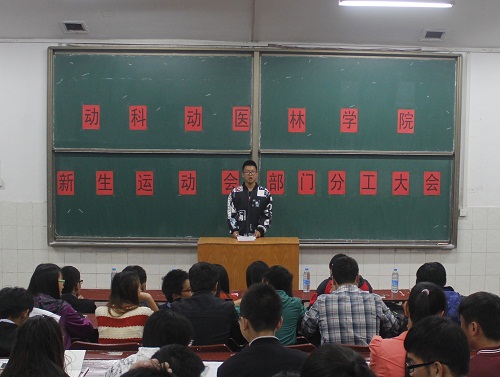 为了加强兄弟院系的交流联系,增强学生体质,活跃校园氛围,动医、动科、林学院将在10月18日联合举办新生运动会。10月15日晚,动科动医林学院新生运动会部门分工大会顺利召开。动医团工委书记王丹、林学院团工委书记郭晋、动科团工委书记李锐,以及三个学院团工委学生会主要学生干部均到场参会。
