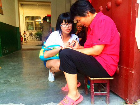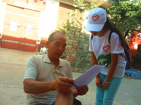 由于村镇交通不便,调研队一行六人分别骑着自行车,摩托车来到了寨西村,大家分为三组,逐家逐户进行访谈及问卷调查。村民们积极配合,并且表示十分支持大学生深入农村了解其现状。