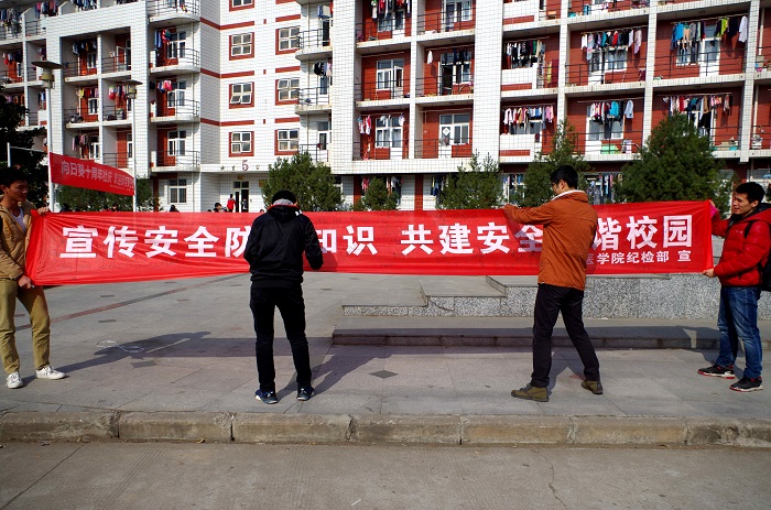 11月20日中午,我院纪检部在西区超市雕塑前举办了冬季安全知识的宣传活动。