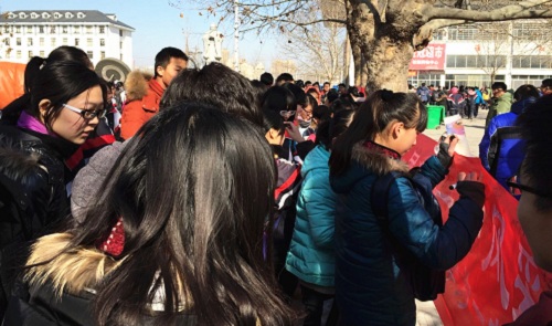 中午12点,队员们在学生去食堂的必经之路上举办了为“高考加油,签字送书签”的活动,活动现场非常火爆,参加活动学弟学妹们也是络绎不绝,签下自己的名字,领取精美的书签。