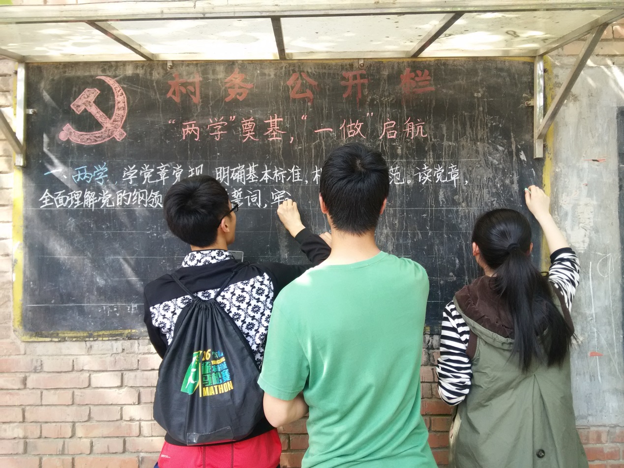 为深入学习贯彻习近平总书记系列重要讲话精神,推动全面从严治党向基层延伸,巩固拓展党的群众路线教育实践活动和“三严三实”专题教育成果,让村民们了解“两学一做”,即“学党章党规、学系列讲话,做合格党员”,在村助的带领下,动医的志愿者们在西卜村村委会进行了宣传板报的绘制工作。在板报的绘制过程中,志愿者们都更加深入的了解了“两学一做”的内涵,这对每个人都非常具有教育意义。