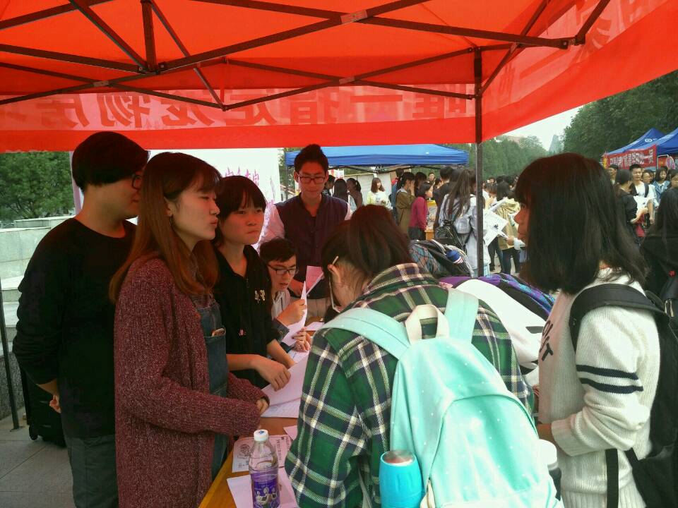 本次活动主要以在西区雕塑旁设立现场报名点,和分发印有活动相关信息的宣传单的方式进行现场宣传。同时以设置大幅喷绘海报进行活动介绍,以及宣传人员现场演唱相关歌曲的形式,吸引了大批感兴趣的同学到报名处咨询相关事项,志愿者们详细耐心地讲解了活动的大致流程和要准备的材料以及注意事项。