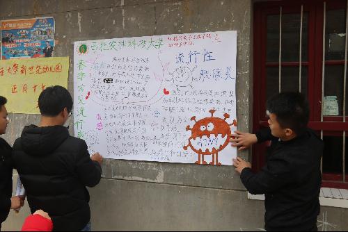 3月5日上午,由动物医学院和机械与电子工程学院阳光团工委支部联合举办的禽流感、流行感冒宣传活动在寨西村展开。旨在向村民们宣传春季流行性感冒及禽流感的相关知识,以采取充分的预防措施,同时锻炼大学生的社会实践与人际交往能力。