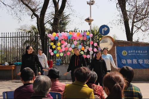 本次义演以一段活泼欢快又充满动感的唱跳拉开了帷幕。演出气氛非常欢快,吸引了许多社区居民驻足观看。歌曲《梦想天空分外蓝》充分展现了当代大学生心怀志向并为之努力的朝气,赢得台下观众的阵阵掌声。活动进行中,社区居民石阿姨为表达对大学生志愿者的鼓励之情,主动上台为大家表演一段秦腔,也增加了居民与同学之间的交流互动。除我院志愿者自导自演的节目之外,来自校武术协会、院腰鼓队以及校双截棍协会的节目也赢得了社区居民的阵阵掌声。居民与志愿者们积极互动,现场气氛热烈异常