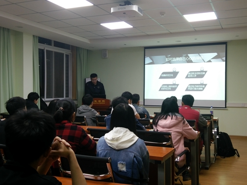 周兆祥学长主要介绍了进入实验室的注意事项。从为什么进入实验室到在实验室应有的态度与作为,周学长将自己在实验室三年来的经验传达给在场的学弟学妹们,他希望大家本着学习的目的进入实验室,可以在获得学习权利的同时也能体会到作为一名研究人员应该承担的责任与义务。